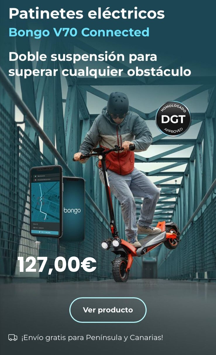 Patinetes Eléctricos Homologados B0NG0 Serie V. 2200W, Autonomía hasta 70km, Doble Suspensión, Ruedas de 10", Sistema de Frenado Doble con Discos, e-ABS, Conexión App